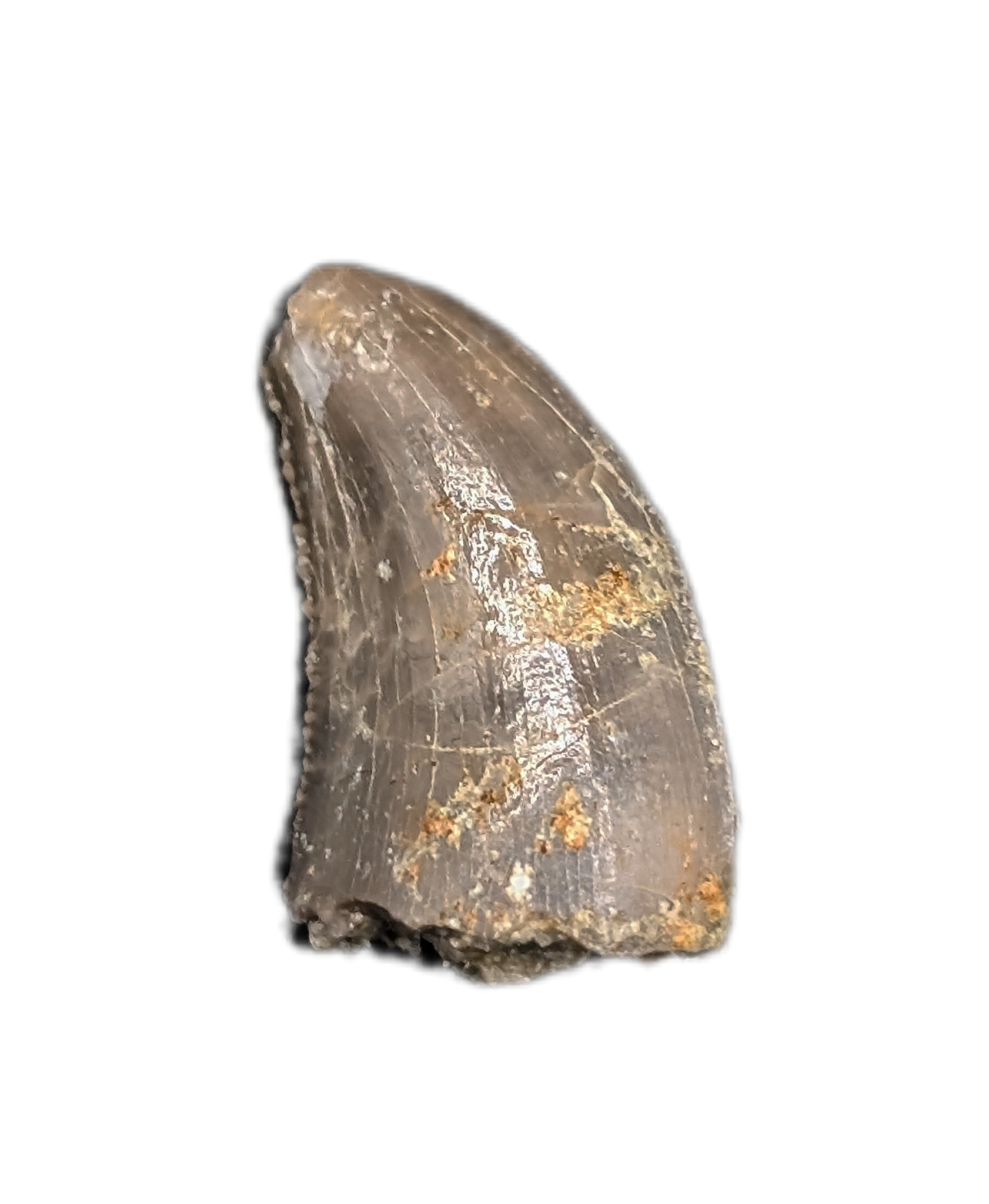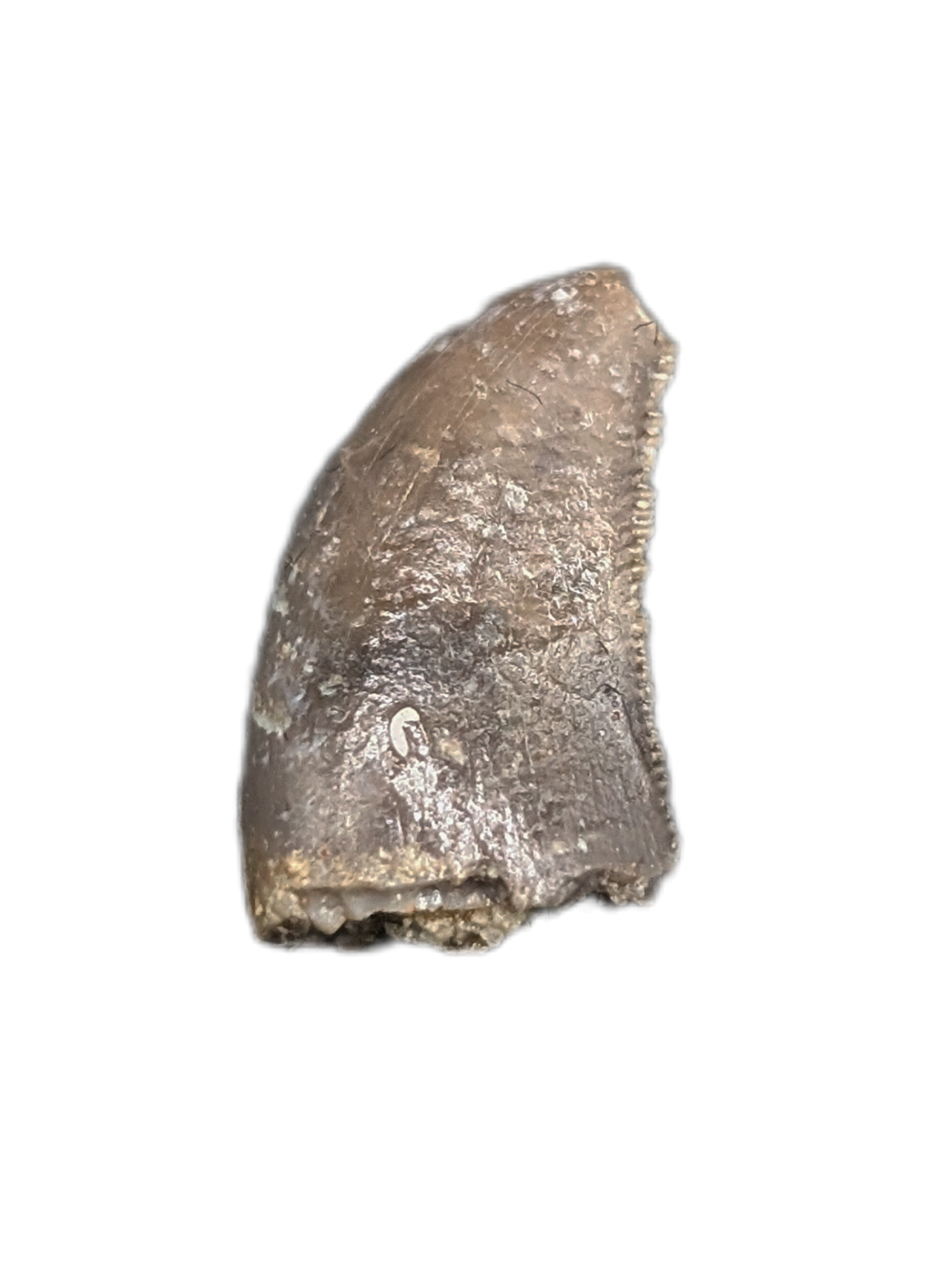 0.45" (1.2 cm) Allosaurus tooth from the Morrison Formation of Moffat County, Colorado.