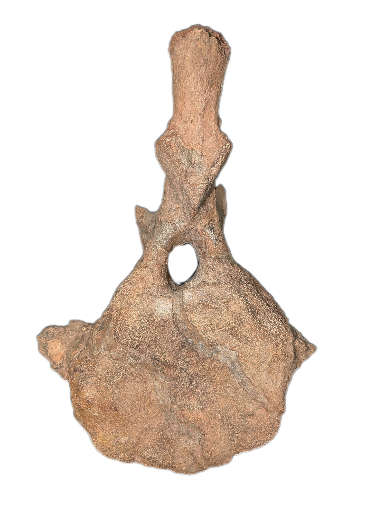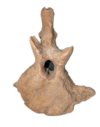 10.5" (26.7 cm) tall by 5.63" (14.3 cm) depth, 8.5" (21.6 cm) wide, Triceratops Vertebra from the Hell Creek Formation of Powder River Co., Montana.