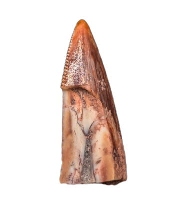 0.46" (1.18 cm) dinosaur (Gojirasaurus?) tooth from the Bull Canyon Formation of New Mexico, Late Triassic. Late Triassic dinosaur teeth are quite rare.