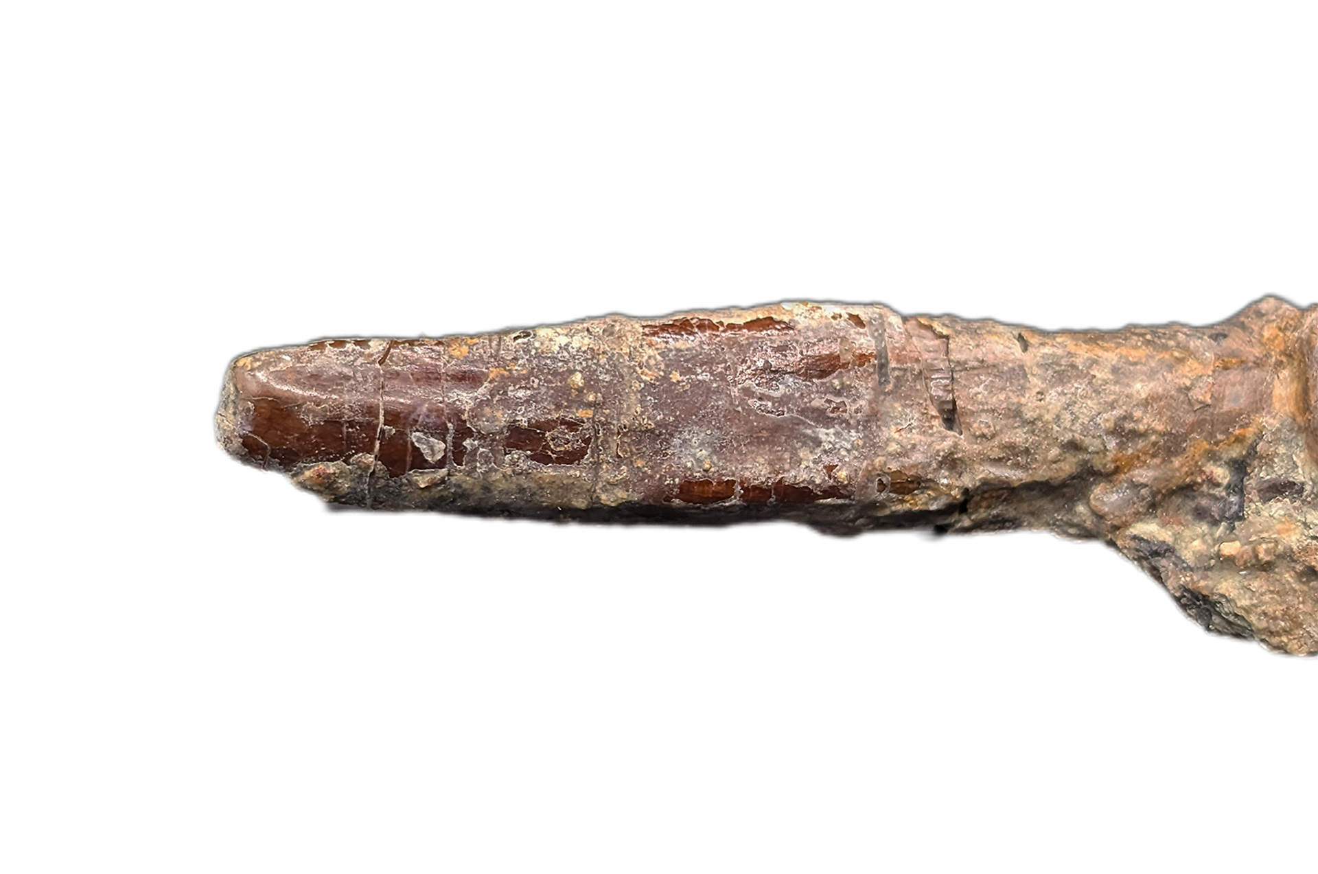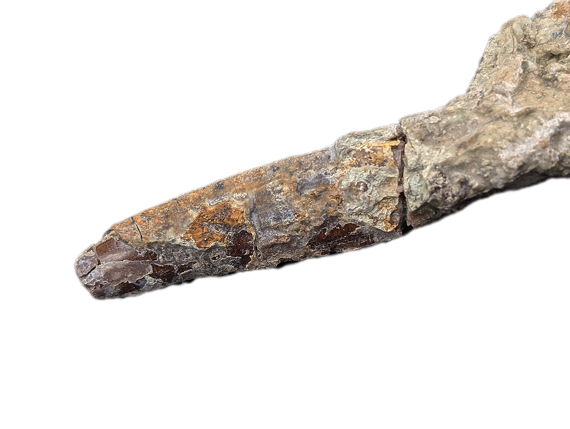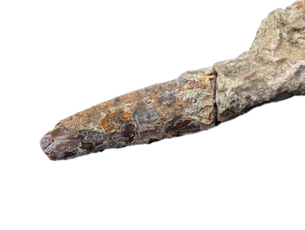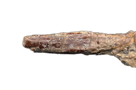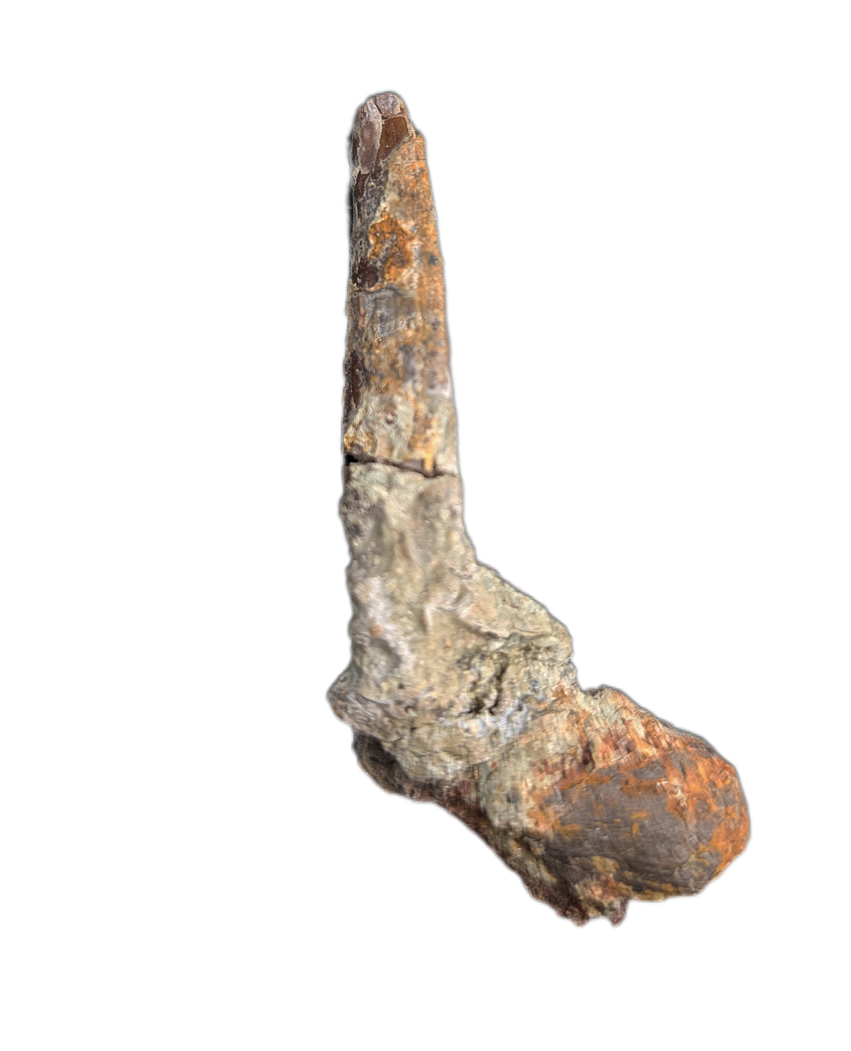 2.14" (5.44 cm) long Diplodocid Sauropod Dinosaur Tooth from the El Mers Formation of Boulahfa, Morocco. 166 Million Years Old.
