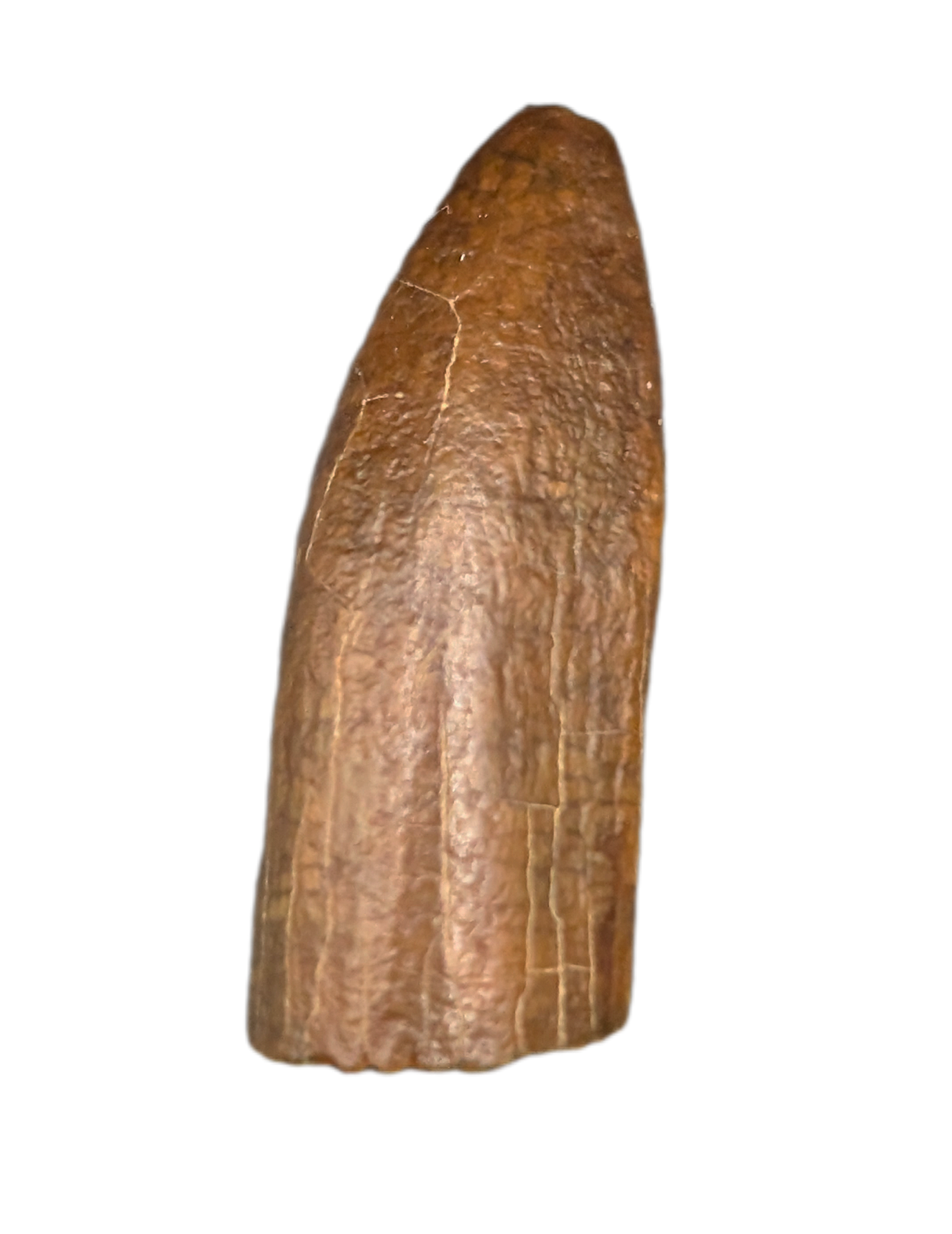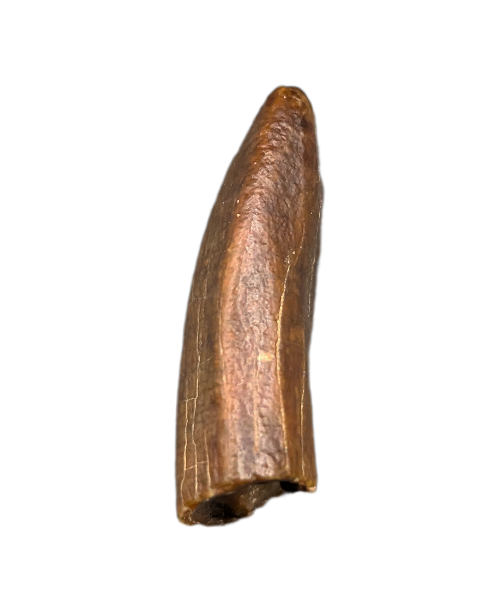 0.58" (1.47 cm) Titanosaur (Dzharatitanis) tooth, Bissekty Formation, Uzbekistan. A rare formation to obtain fossils. 90-92 Million years old, the Bissekty Formation has outcrop in the Kyzyl Kum desert of Uzbekistan. This is the Bissekty Sauropod tooth I've ever come across.