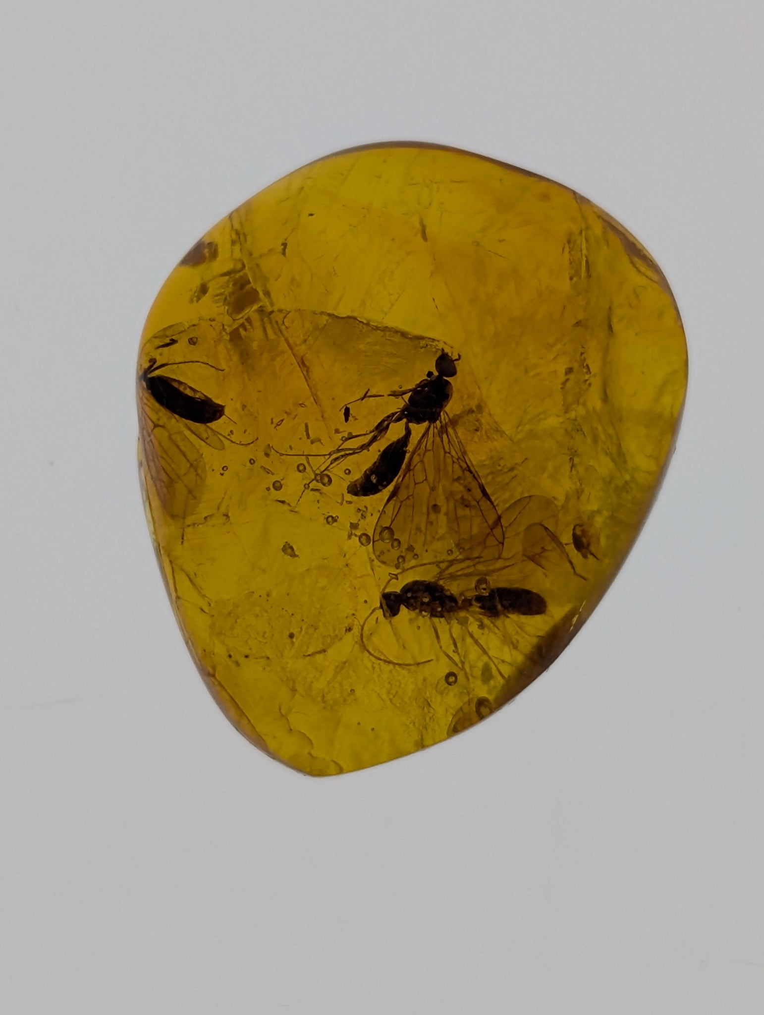 0.58" (1.5 cm) long Amber with insects from the Dominican Republic. 20 -25 million years old. Dominican amber is well known for its clarity and exquisite preservation!