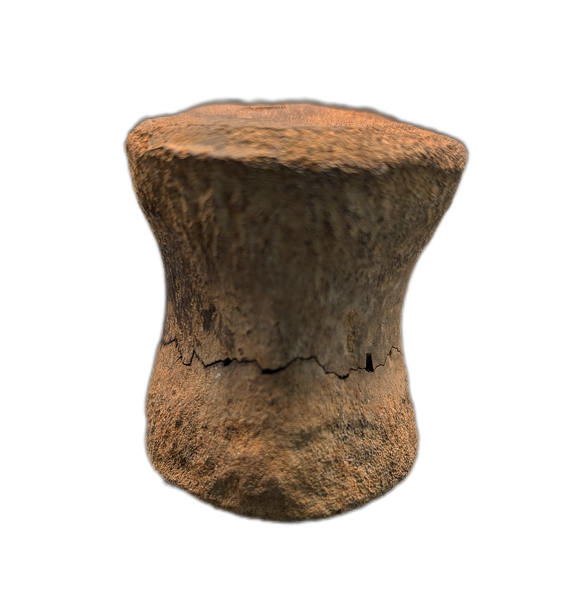 1.7" (4.42 cm) long, 1.57" (4 cm) tall, 1.5" ( 3.9) cm wide Pachycephalosaurus Vertebrae from the Hell Creek Formation of  Custer Co., Montana.