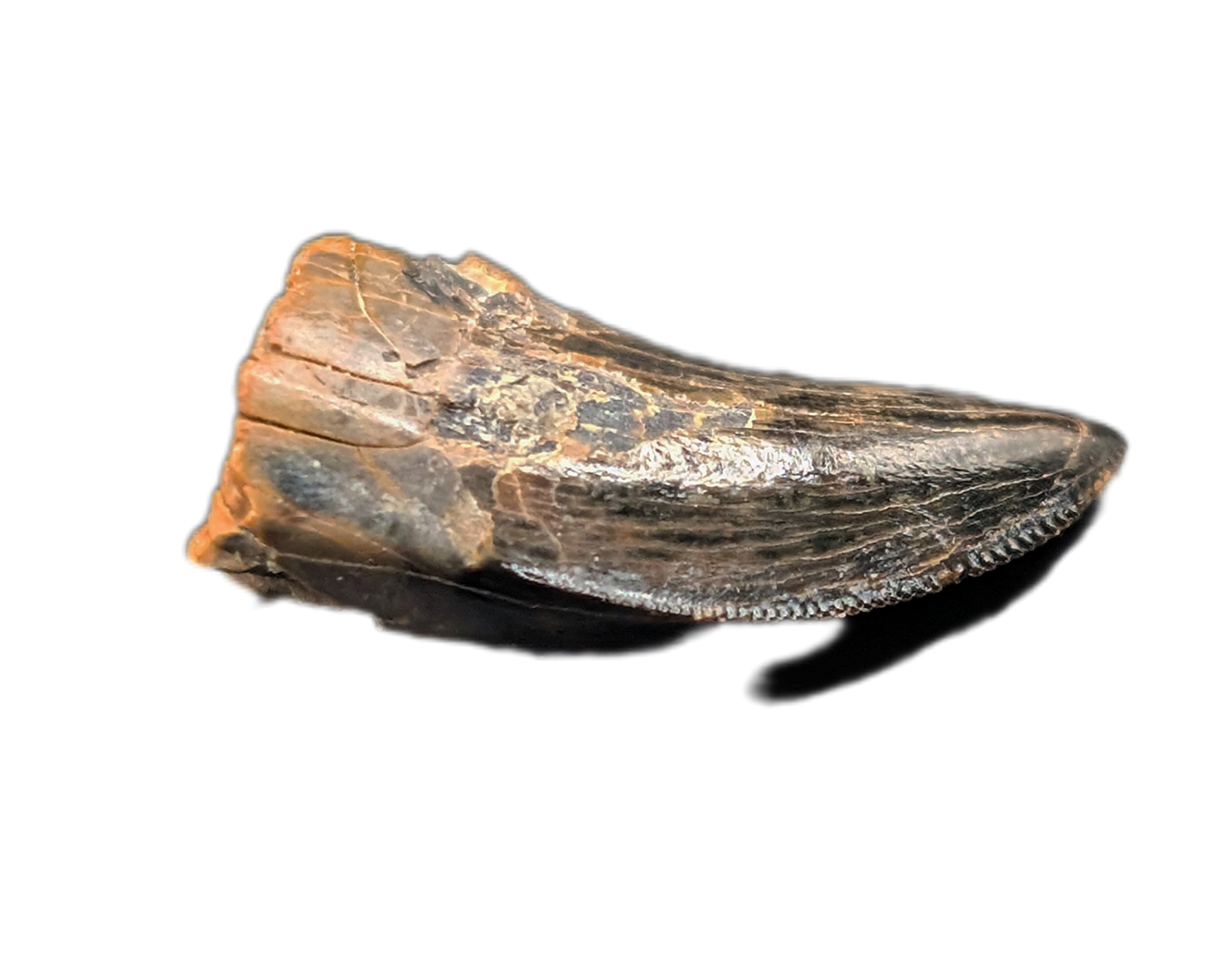 0.57" (1.46 cm) Tyrannosauridae (Teratophoneus?) Tooth from the Aguja Formation of Brewster County Texas. Very rare location, 81 to 76 million years old.