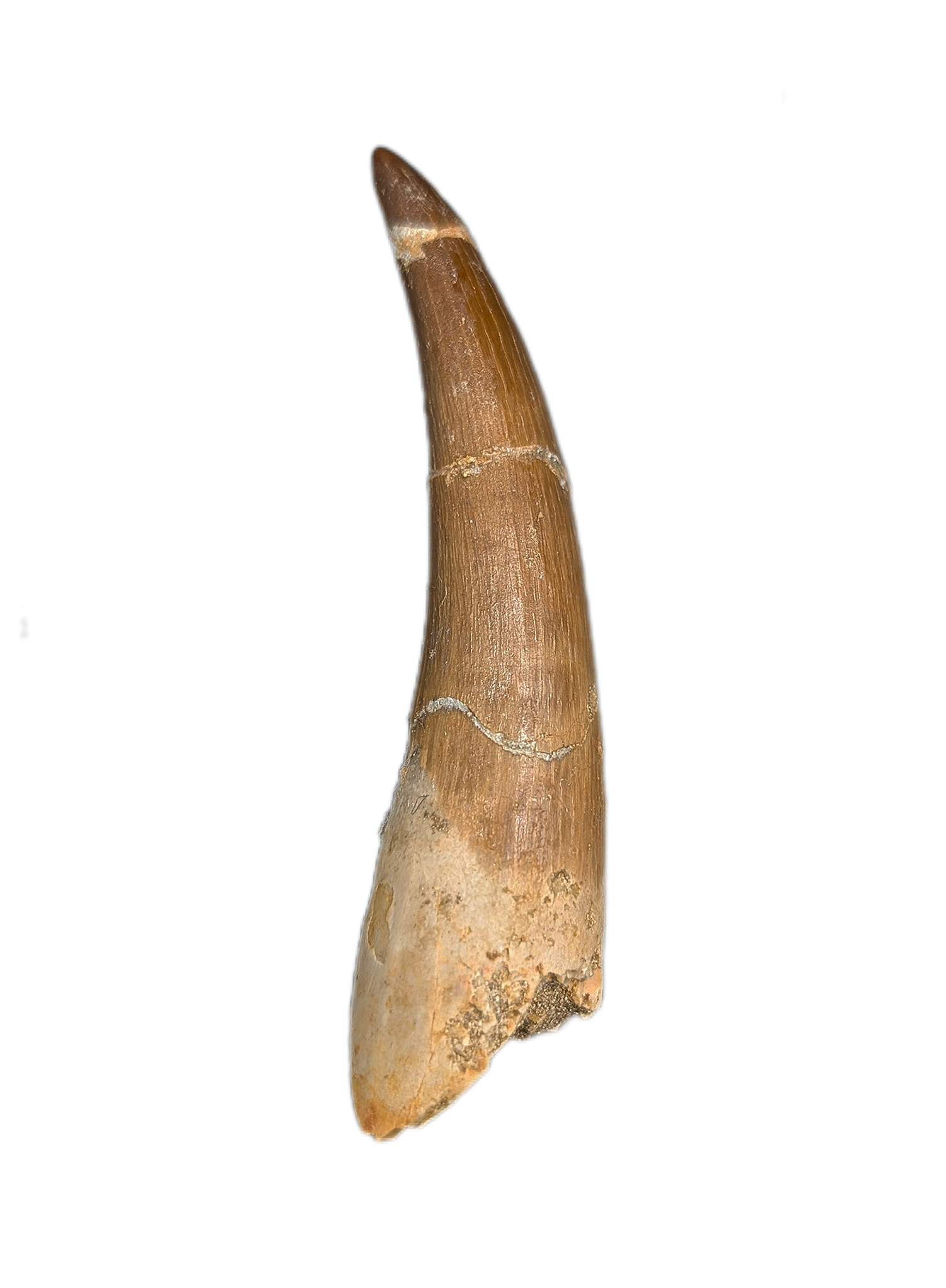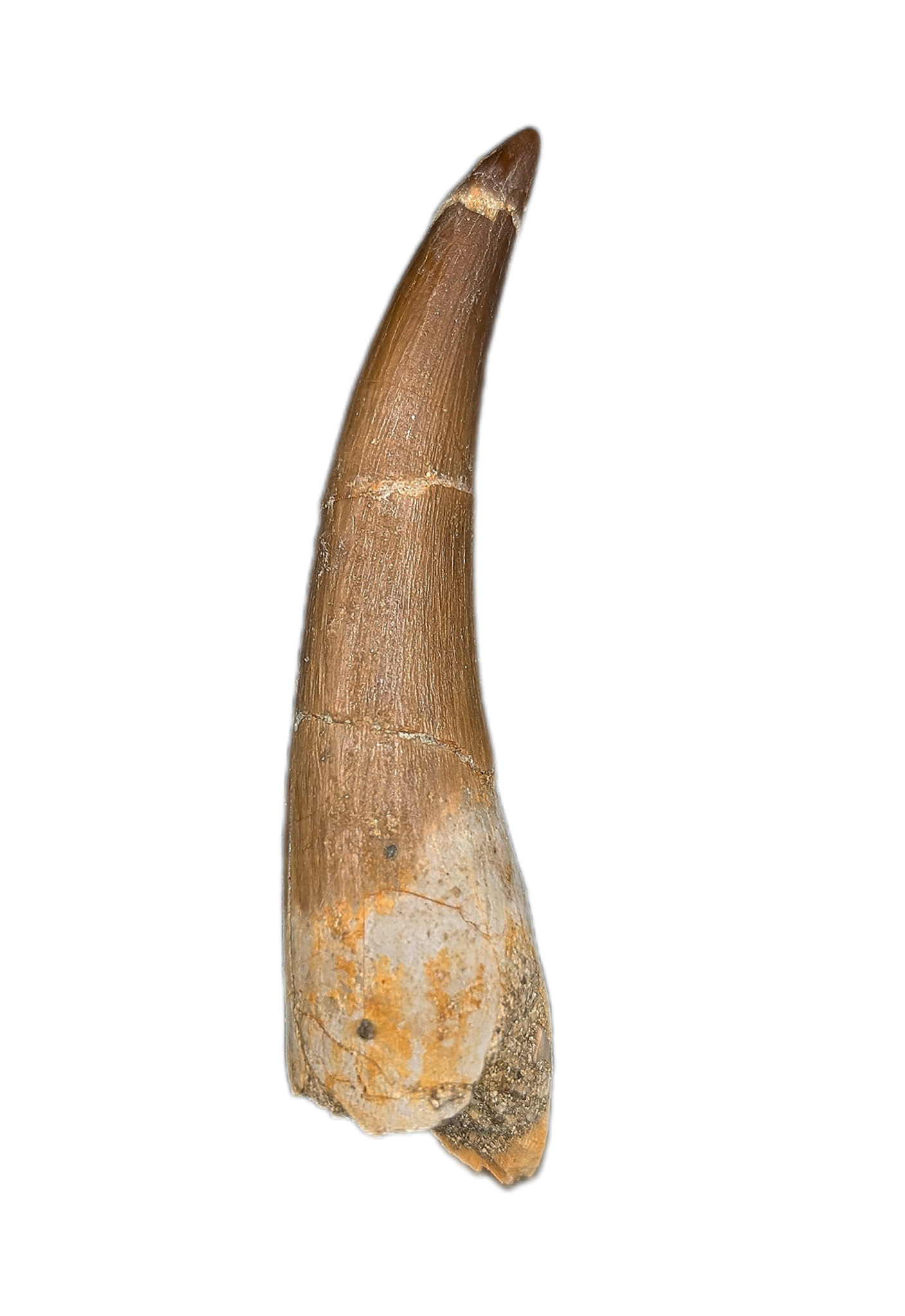 2.8" (7.1 cm) Plesiosaur (Zarafasaura) Tooth from the Moroccan phosphate beds. These 70 million-year-old teeth are from an aquatic reptile with a long neck. These are not dinosaurs but are truly magnificent none the less.