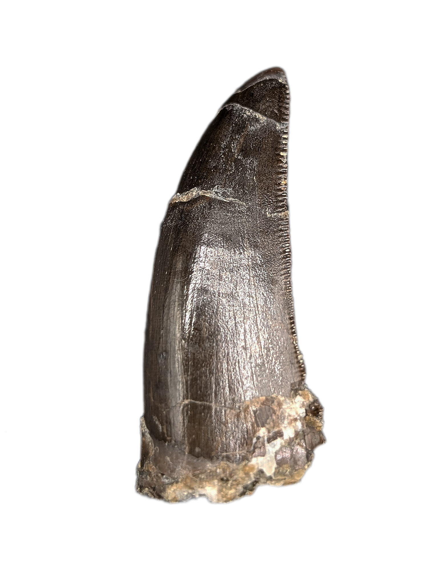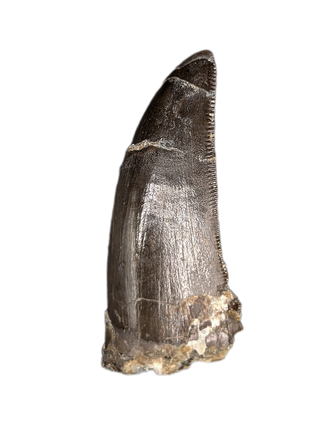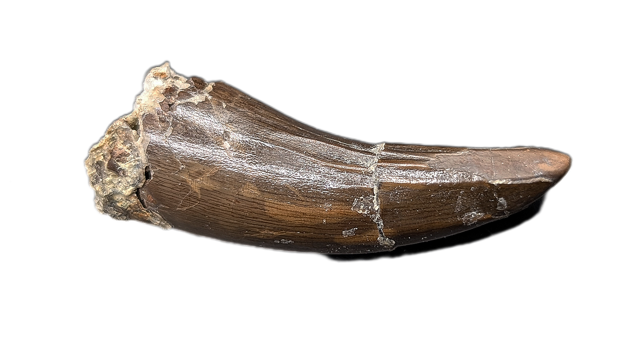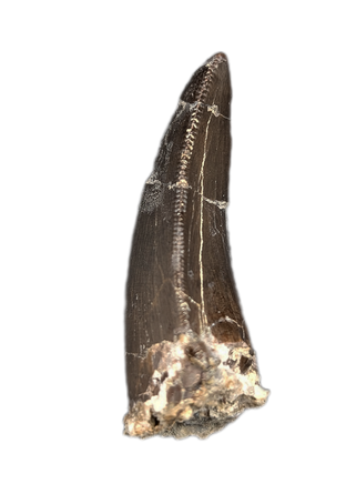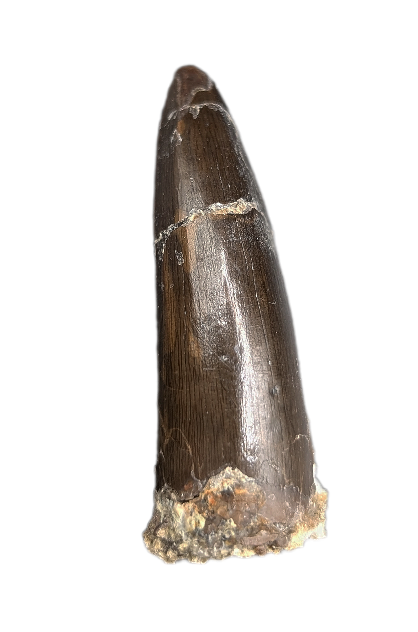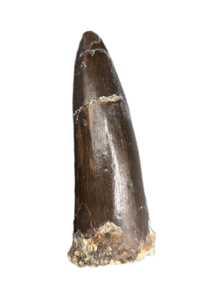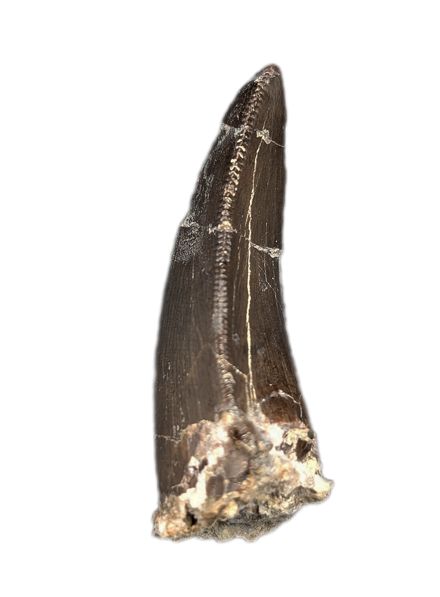 1.52" (3.87 cm) long Ceratosaur Anterior Tooth from the El Mers Formation of Boulahfa, Morocco. 166 Million Years Old.