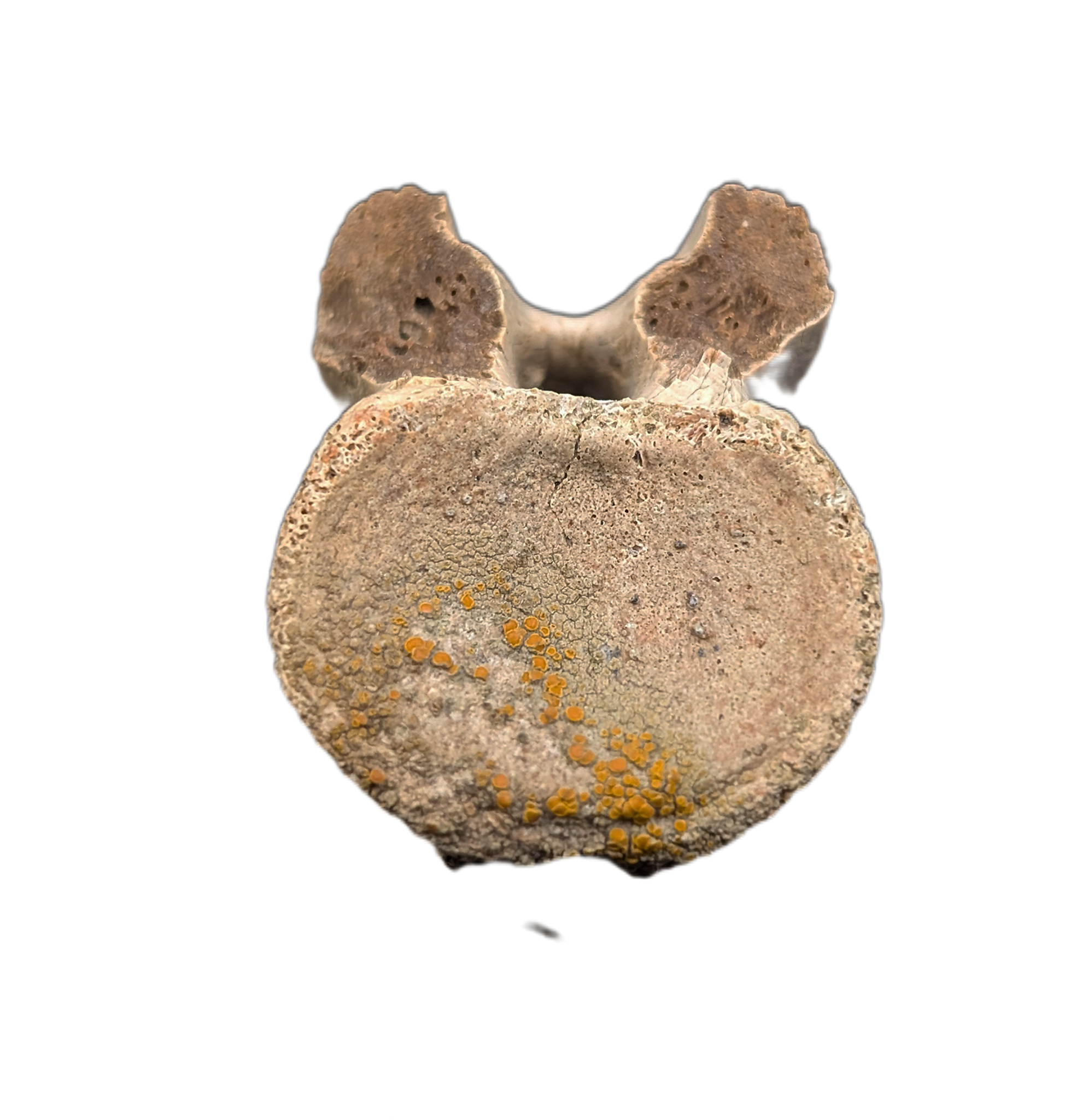 2" (5.07 cm) Struthiominus tail vertebra. Found in Custer County, Montana. From the Hell Creek formation, 66-70 million years old.