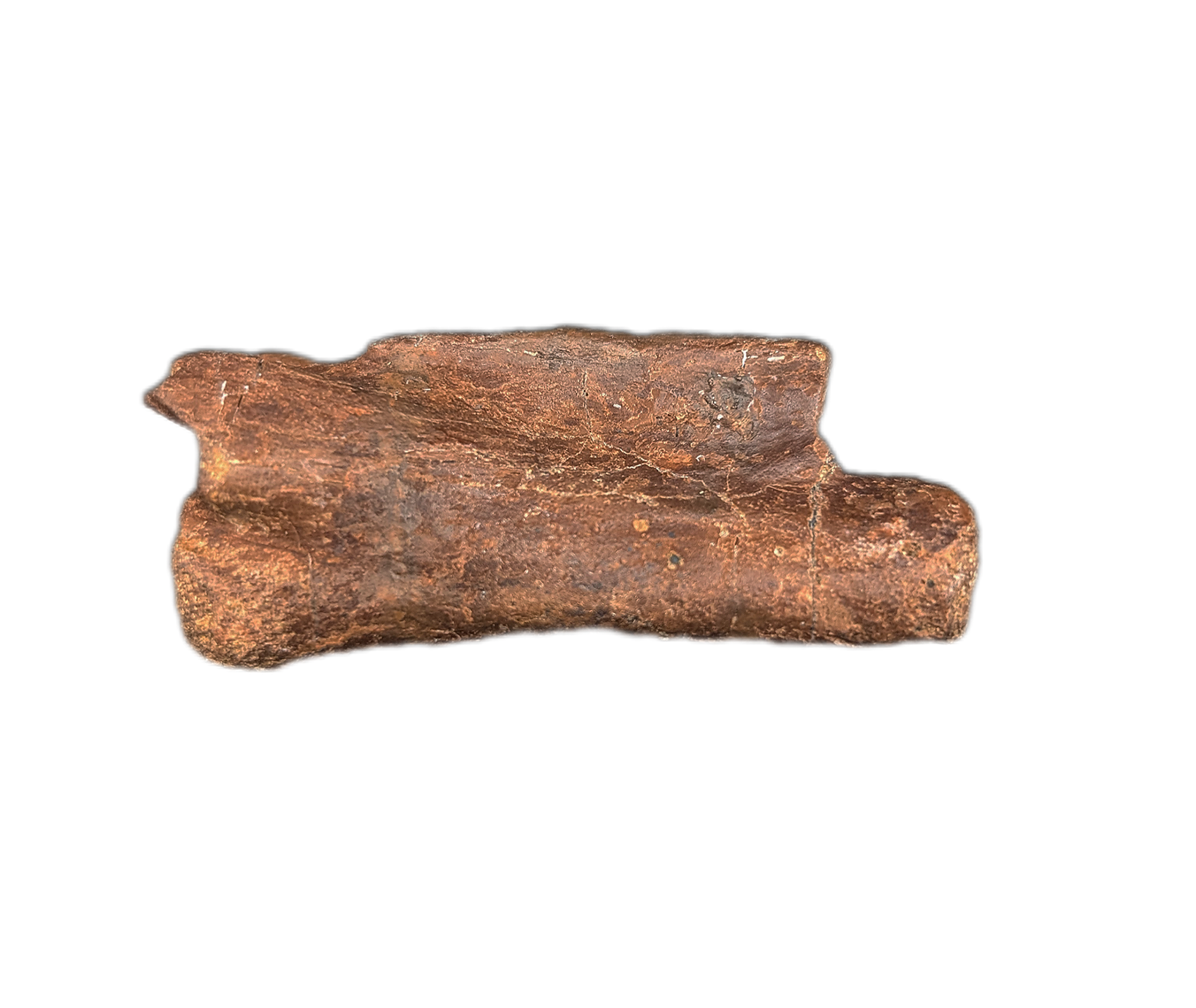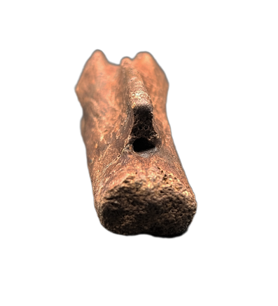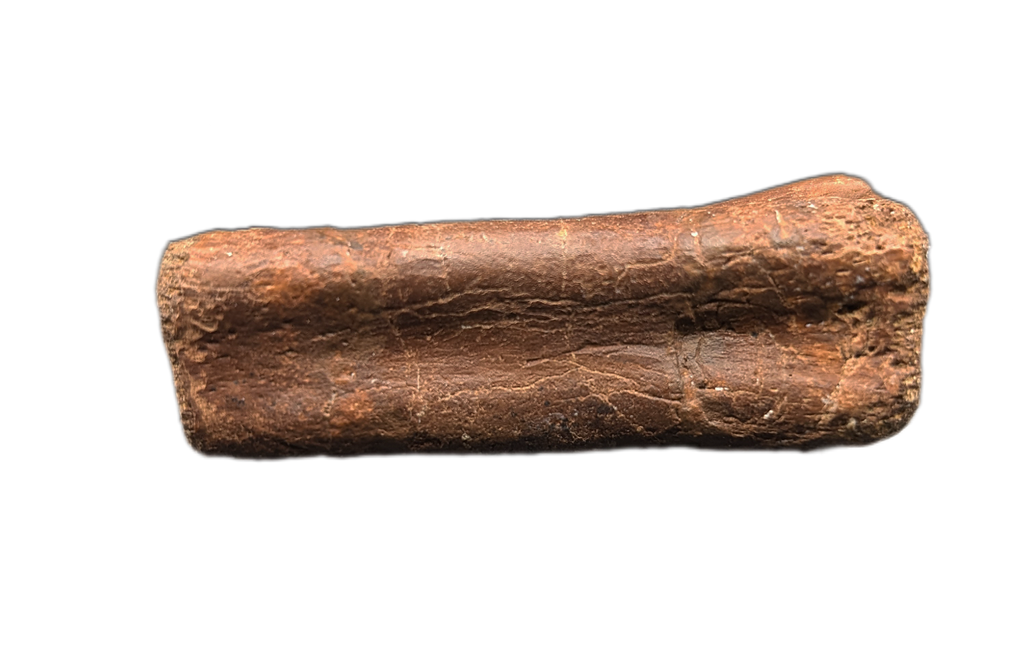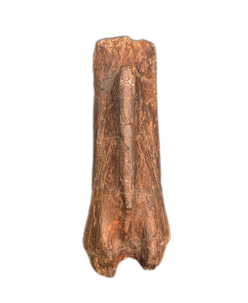 2.11" (5.38 cm) Struthiominus tail vertebra. Found in Custer County, Montana. From the Hell Creek formation, 66-70 million years old.