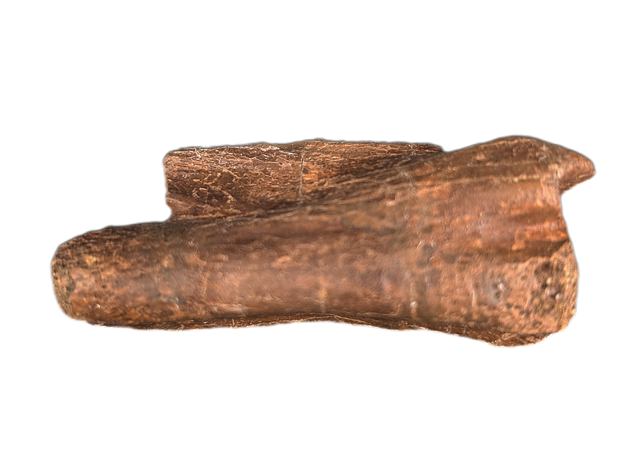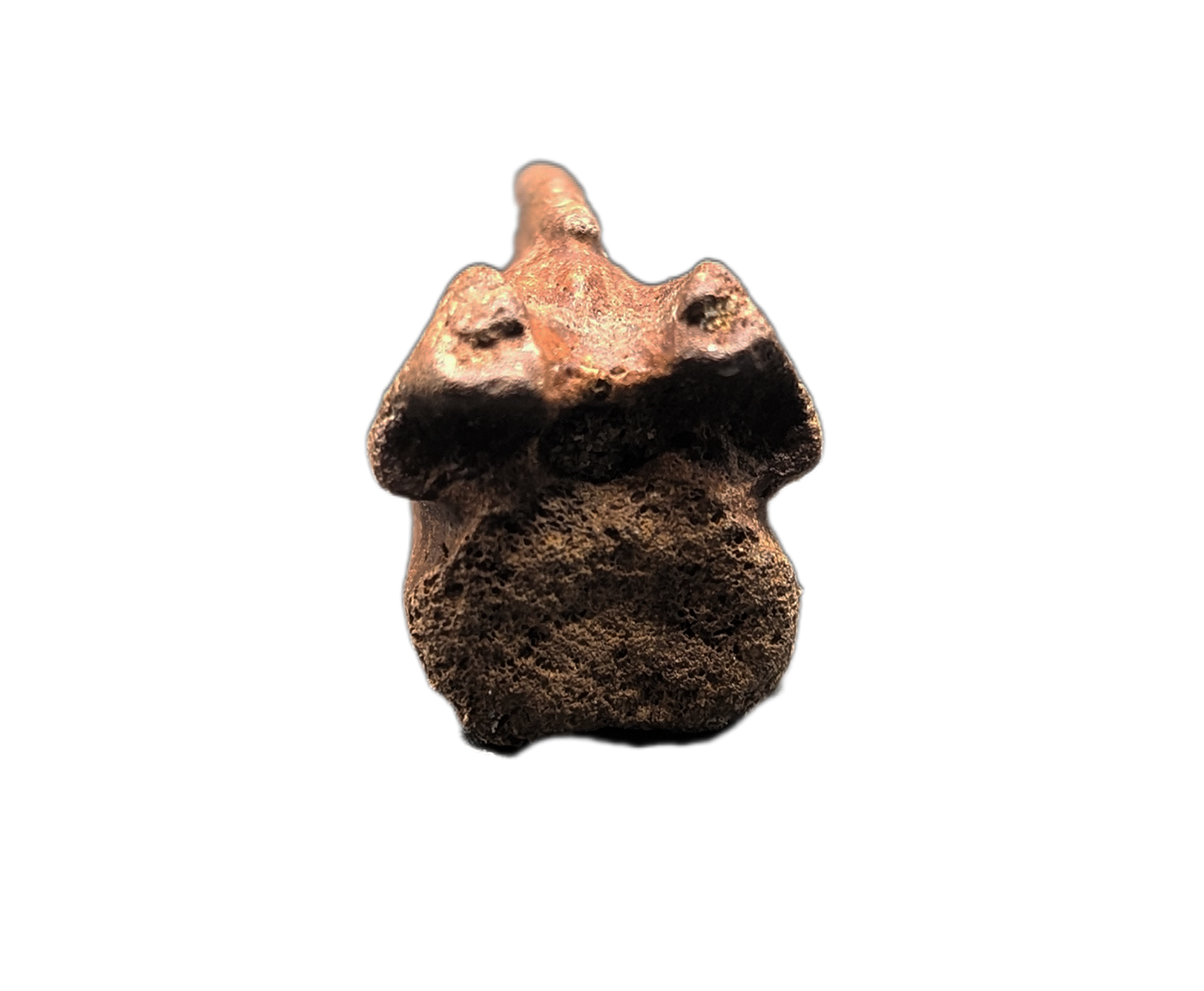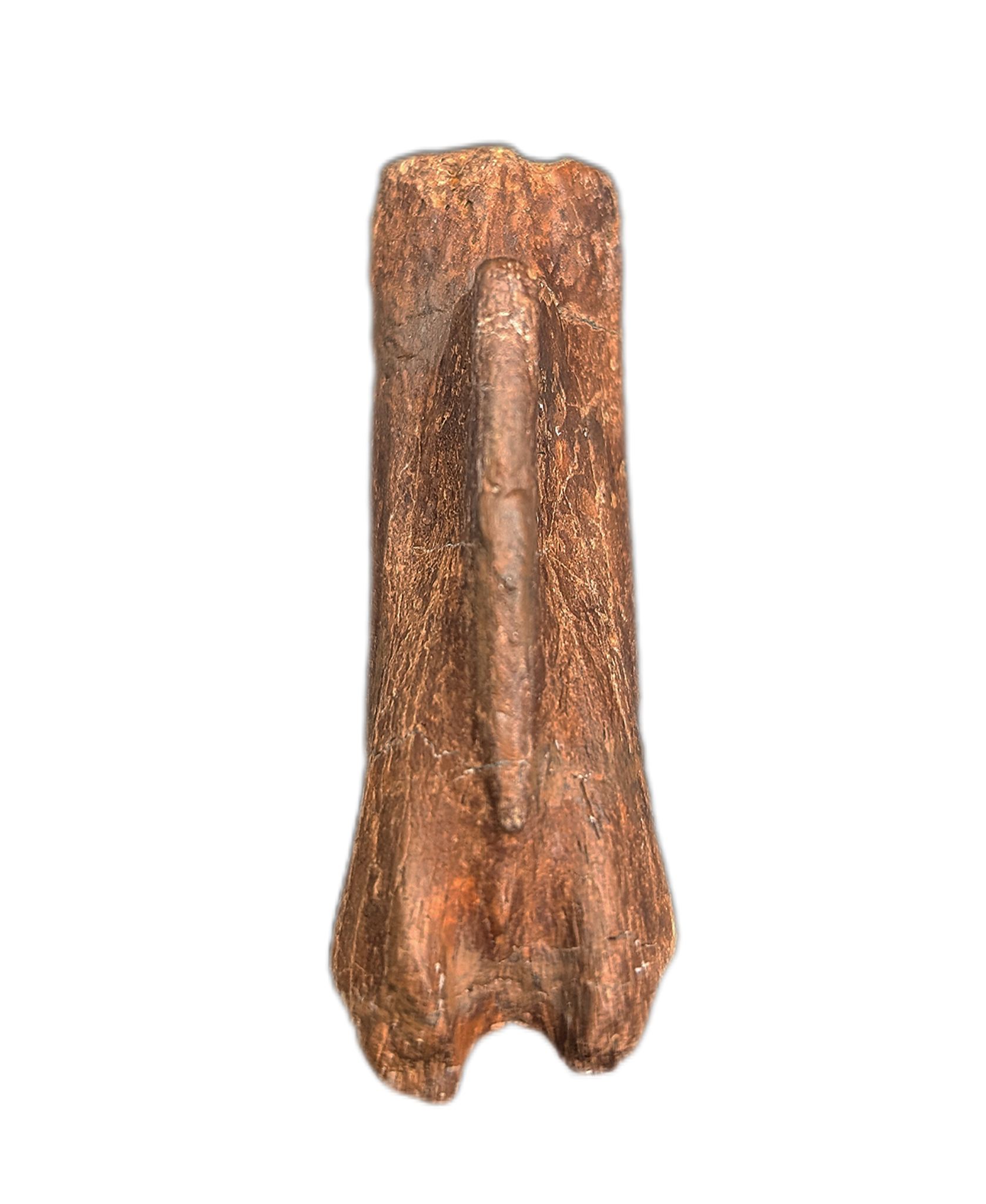 2.11" (5.38 cm) Struthiominus tail vertebra. Found in Custer County, Montana. From the Hell Creek formation, 66-70 million years old.