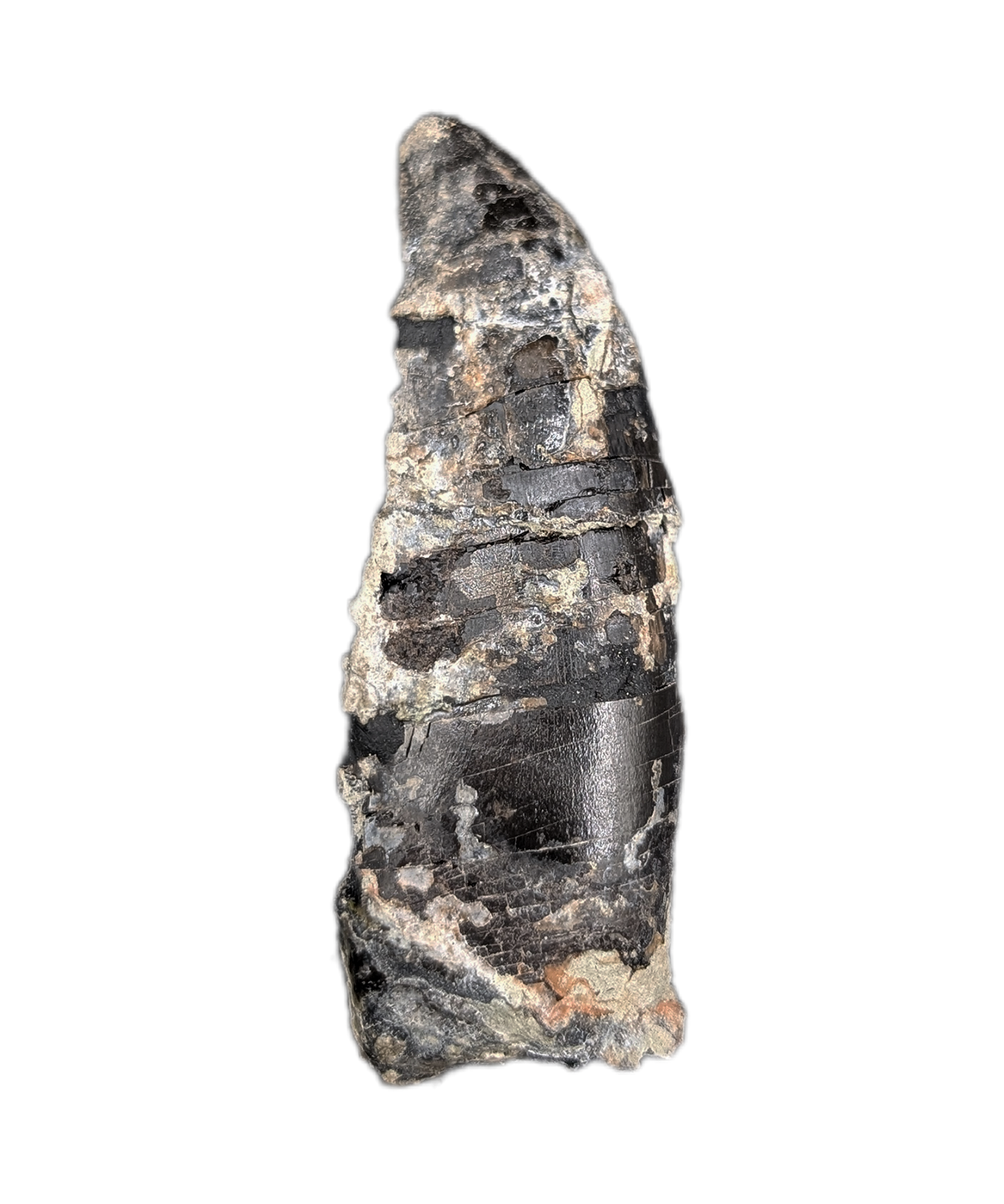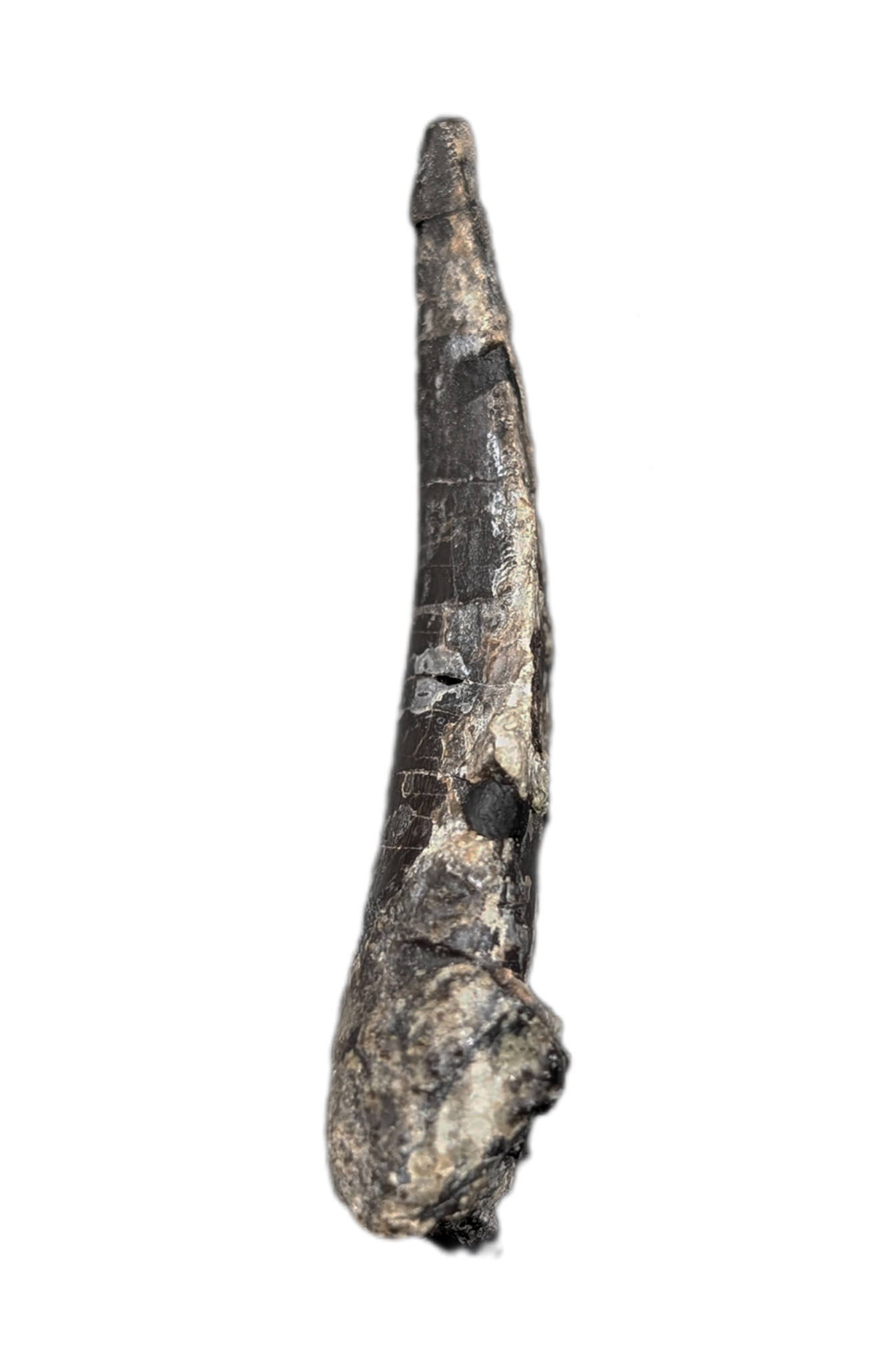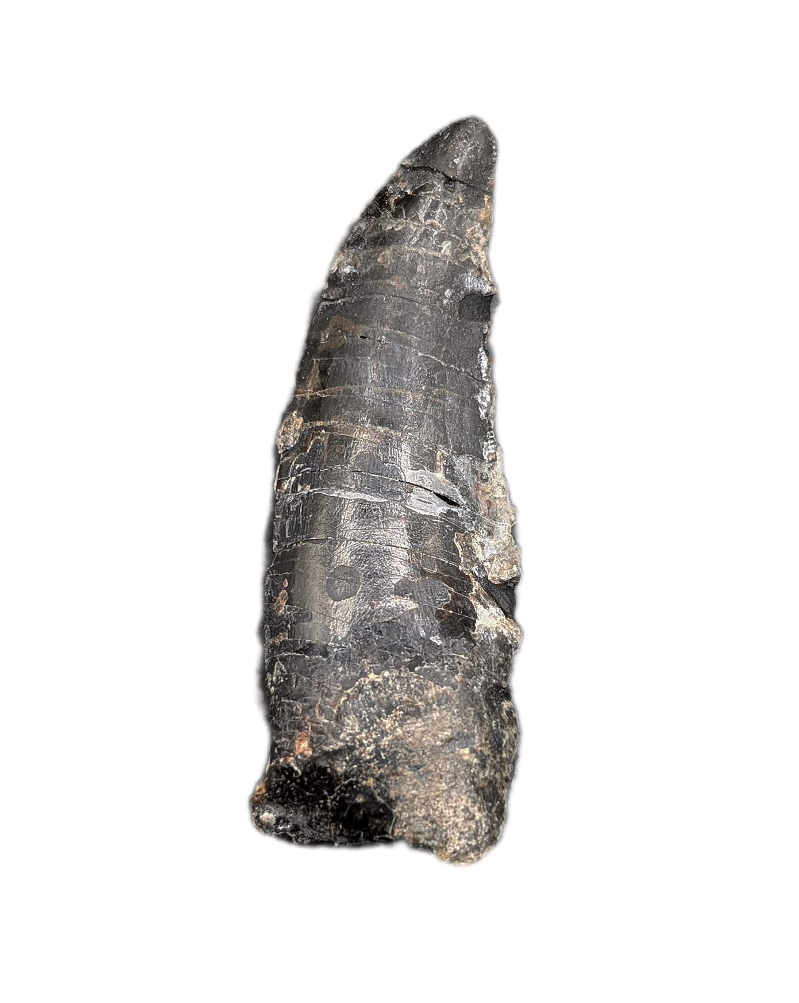 1.92" (4.87 cm) long Torvosaur Tooth from the El Mers Formation of Boulahfa, Morocco. 166 Million Years Old.