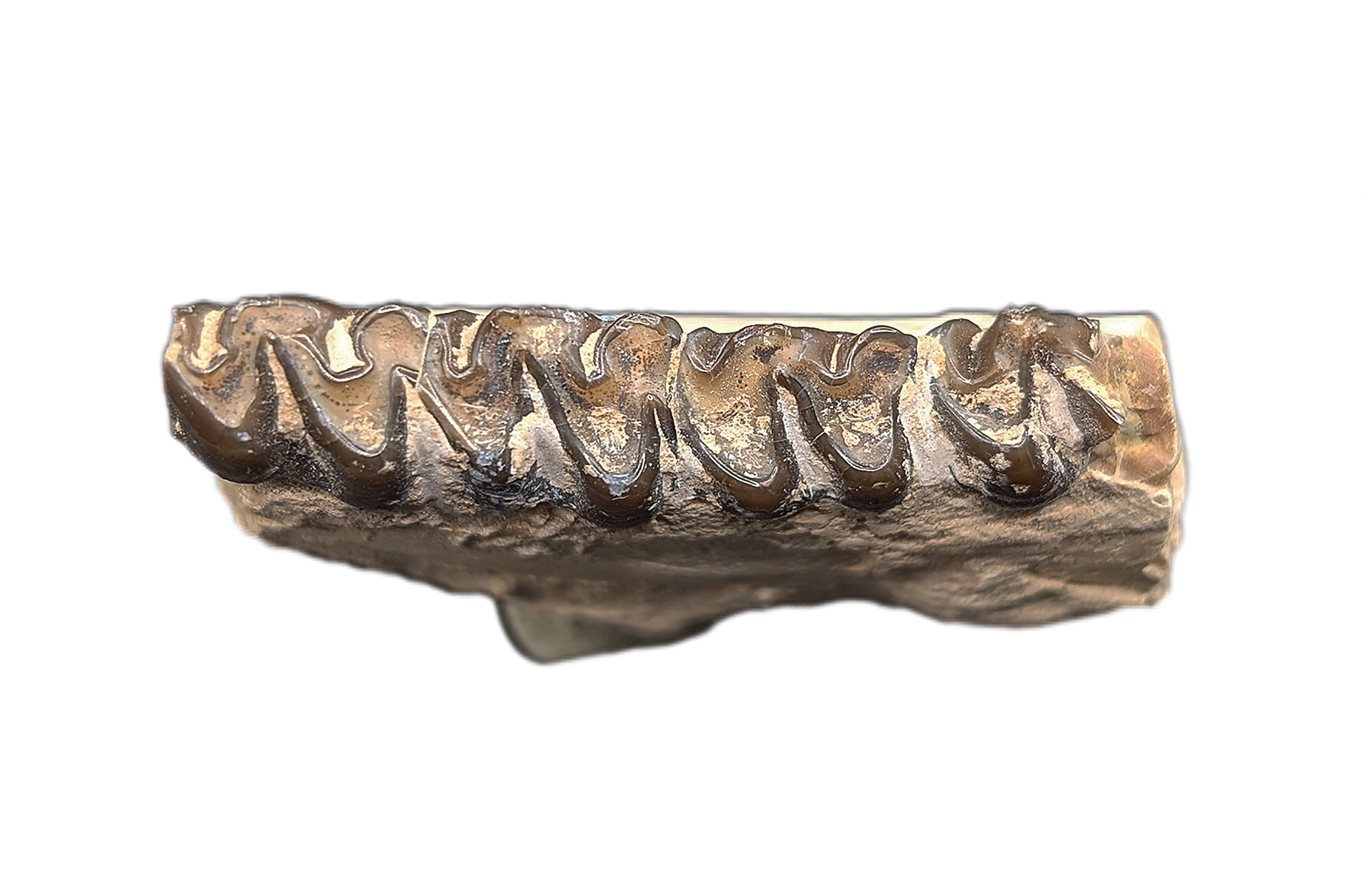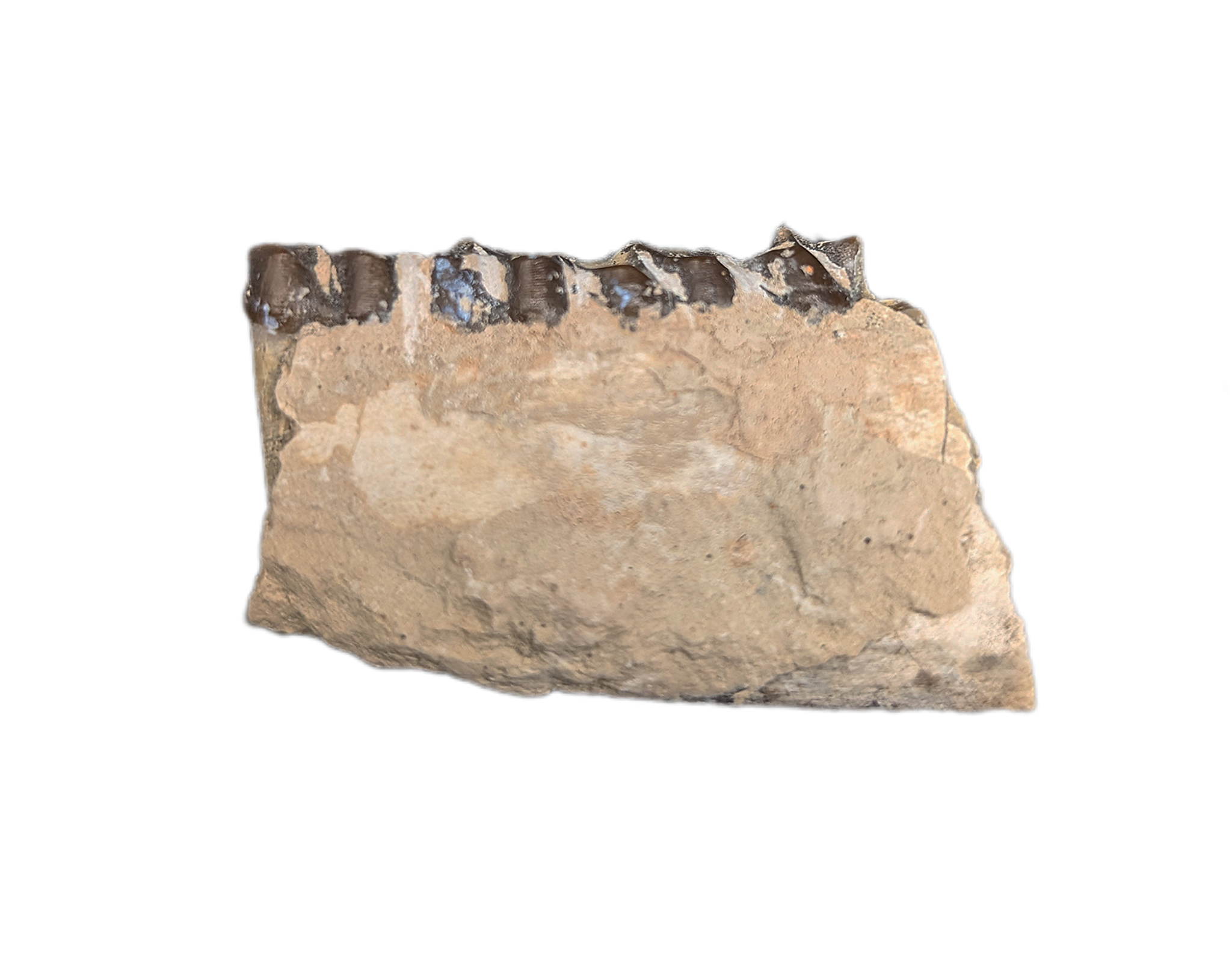 1.88" (4.8 cm) Mesohippus jaw section from the Brule Formation of South Dakota. 30-34 million years old.