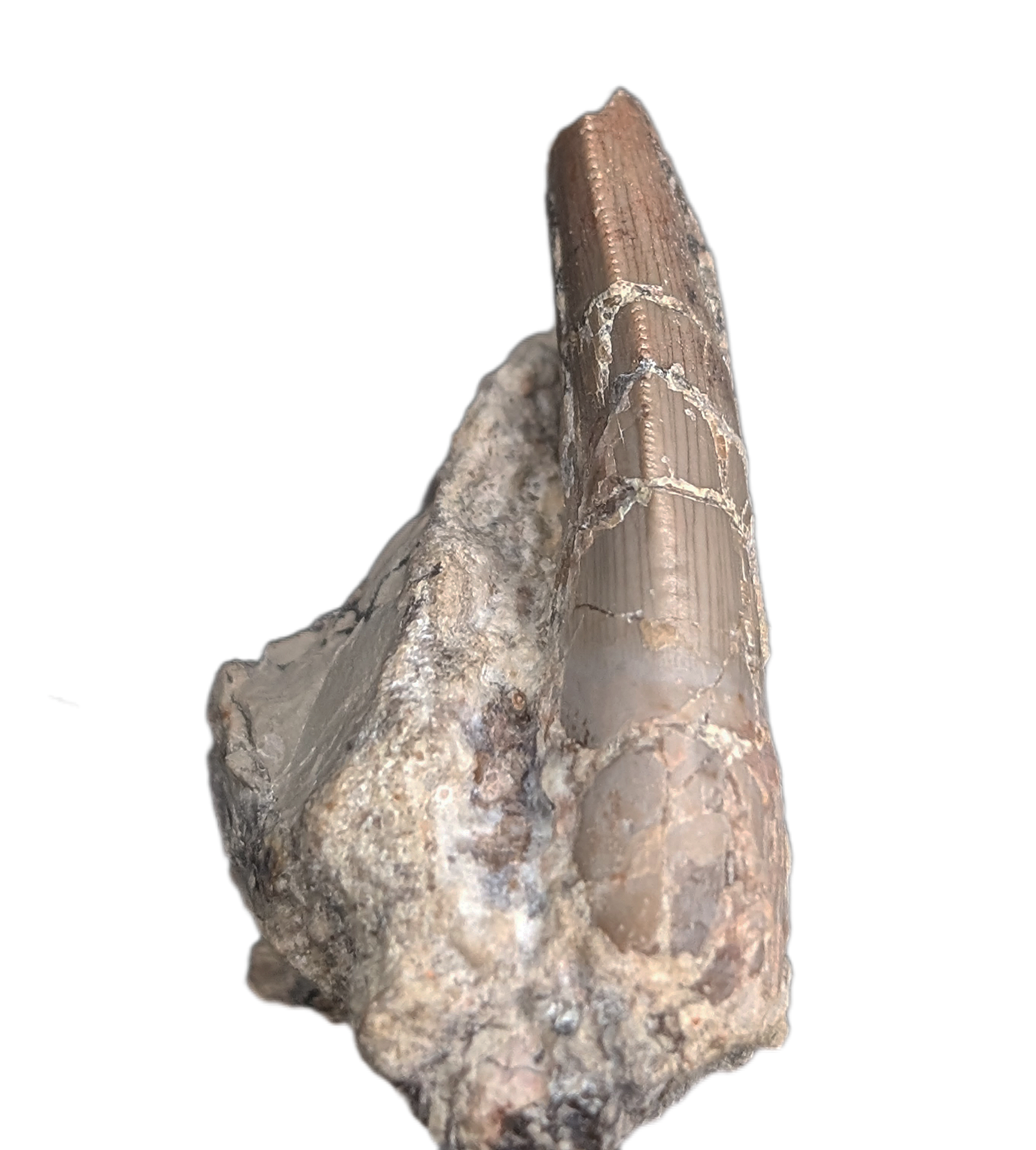 1" (2.54 cm) Postouchus (Rauisuchid) tooth. From the Chinle Formation found in Navajo County Arizona. From the Late Triassic about 205-215 million years old.
