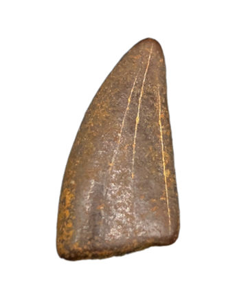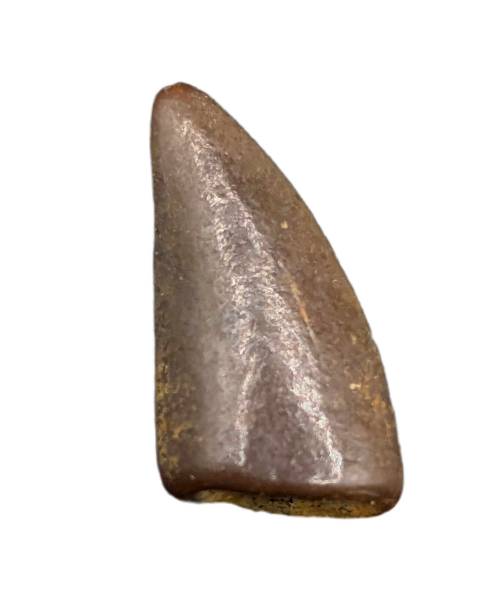 0.35" (0.89 cm) raptor (Itemirus?) tooth, Bissekty Formation, Uzbekistan. A rare formation to obtain fossils. 90-92 Million years old, the Bissekty Formation has outcrop in the Kyzyl Kum desert of Uzbekistan. Small teeth are very rare to find from this formation.