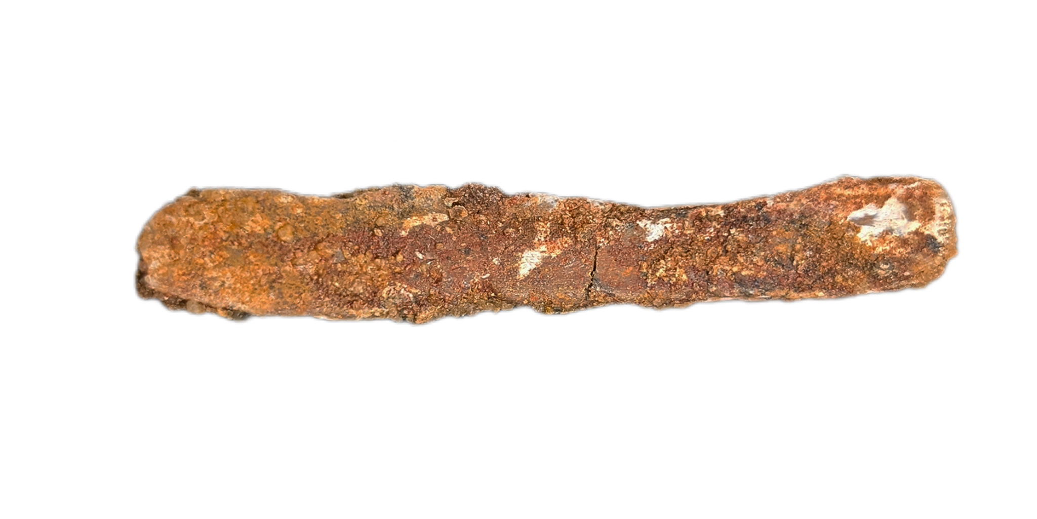 1.8" (4.58 cm) long, Spinosaurus? tail chevron from the Kem Kem of Morocco. 95 Million Years Old.