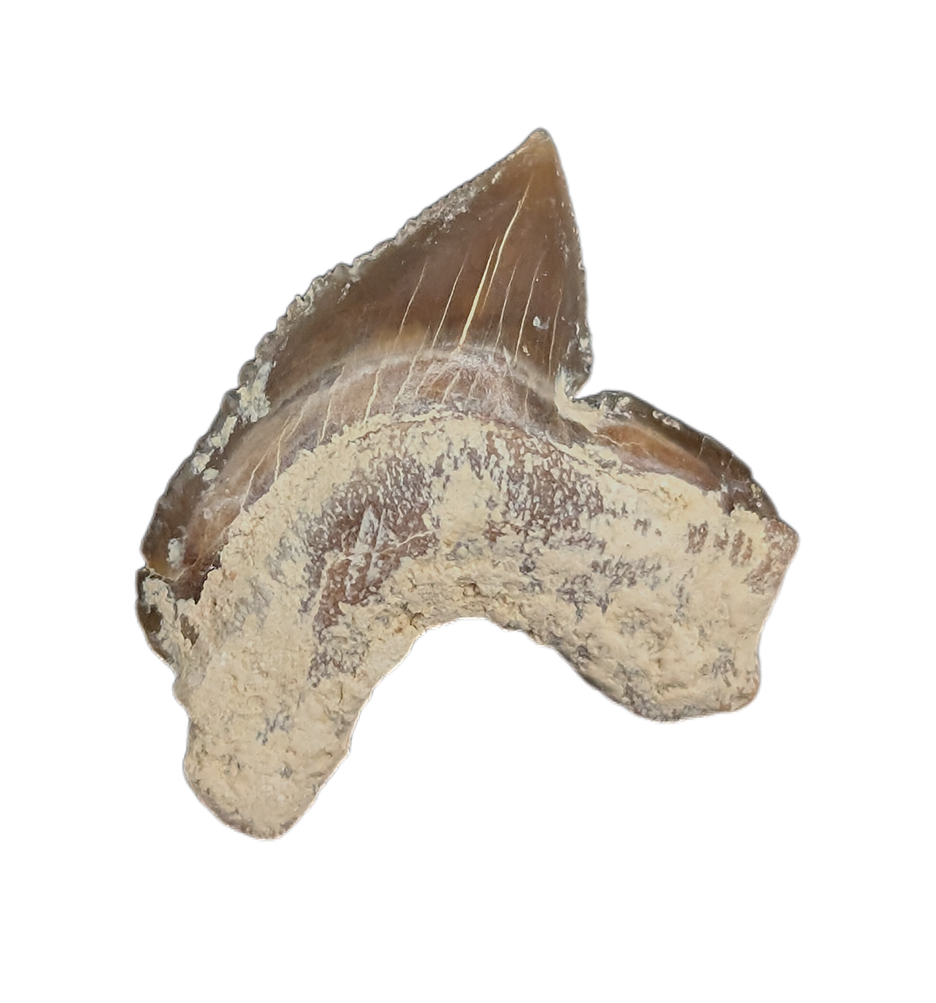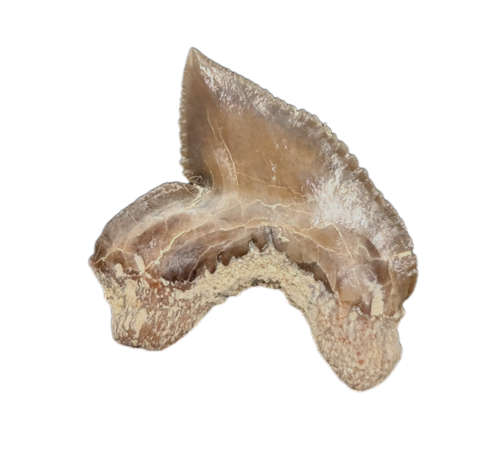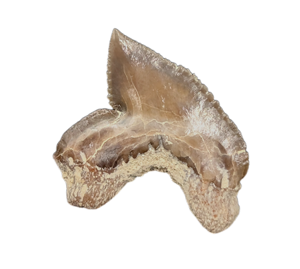0.46" (1.17 cm) Squalicorax falcatus tooth from the Niobrara Formation of Kansas. This shark swam the western interior seaways 87-82 million years ago.
