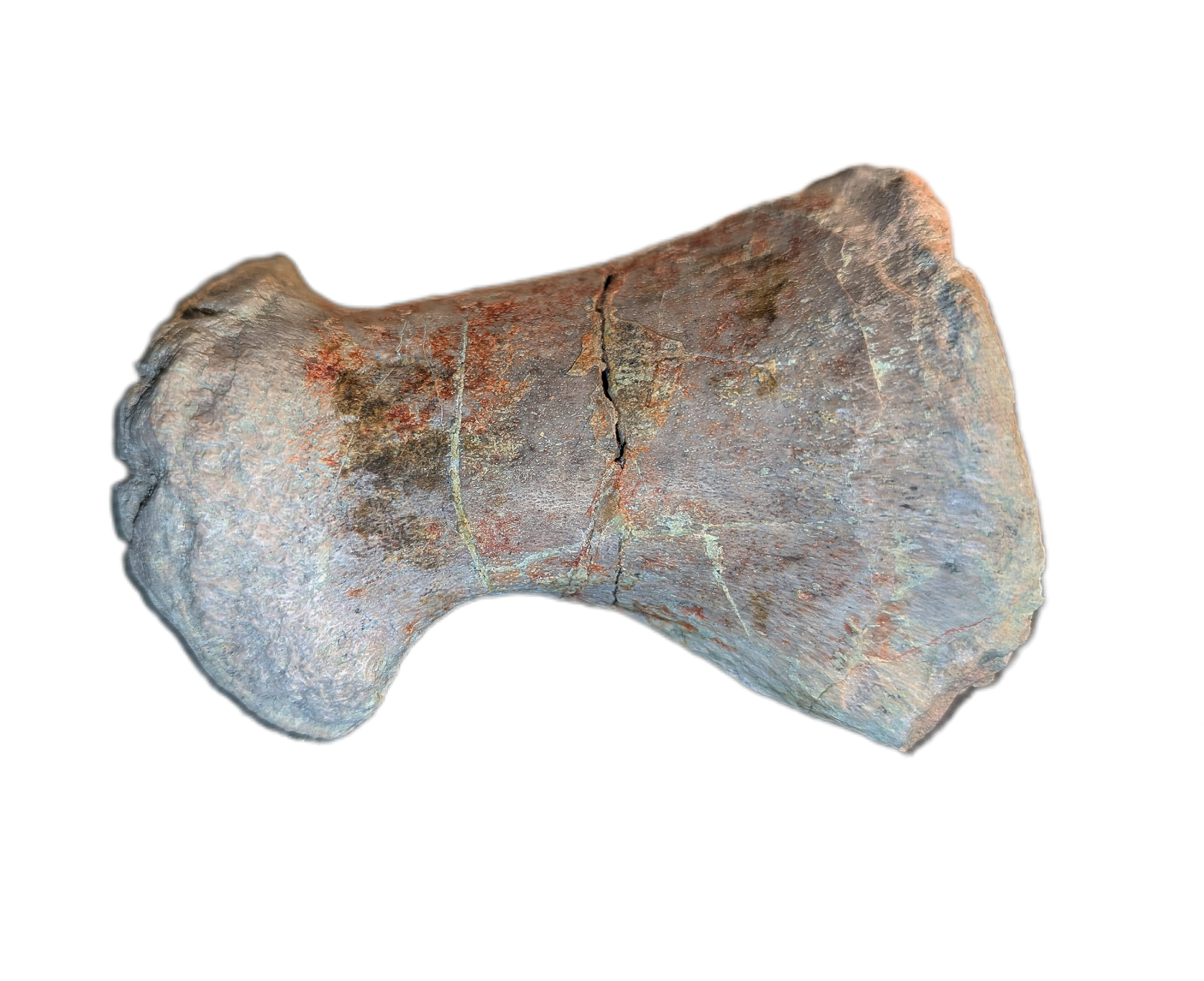 3.95" (10 cm) long, 2.05" (5.2 cm) by 2.58" (6.55 cm) Stegosaur? Metacarpal, from the El Mers III Formation of Boulahfa, Morocco. 166 Million Years Old.