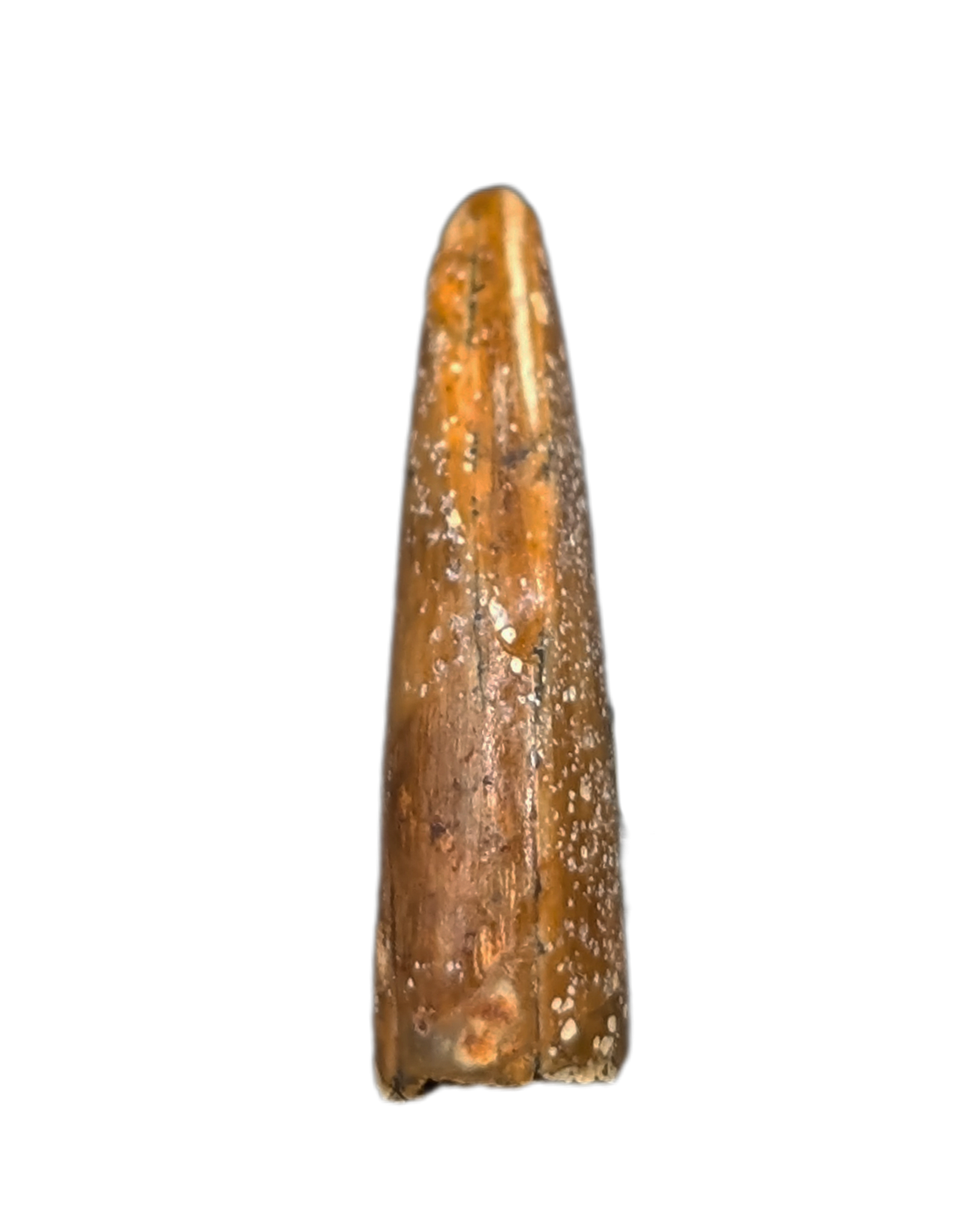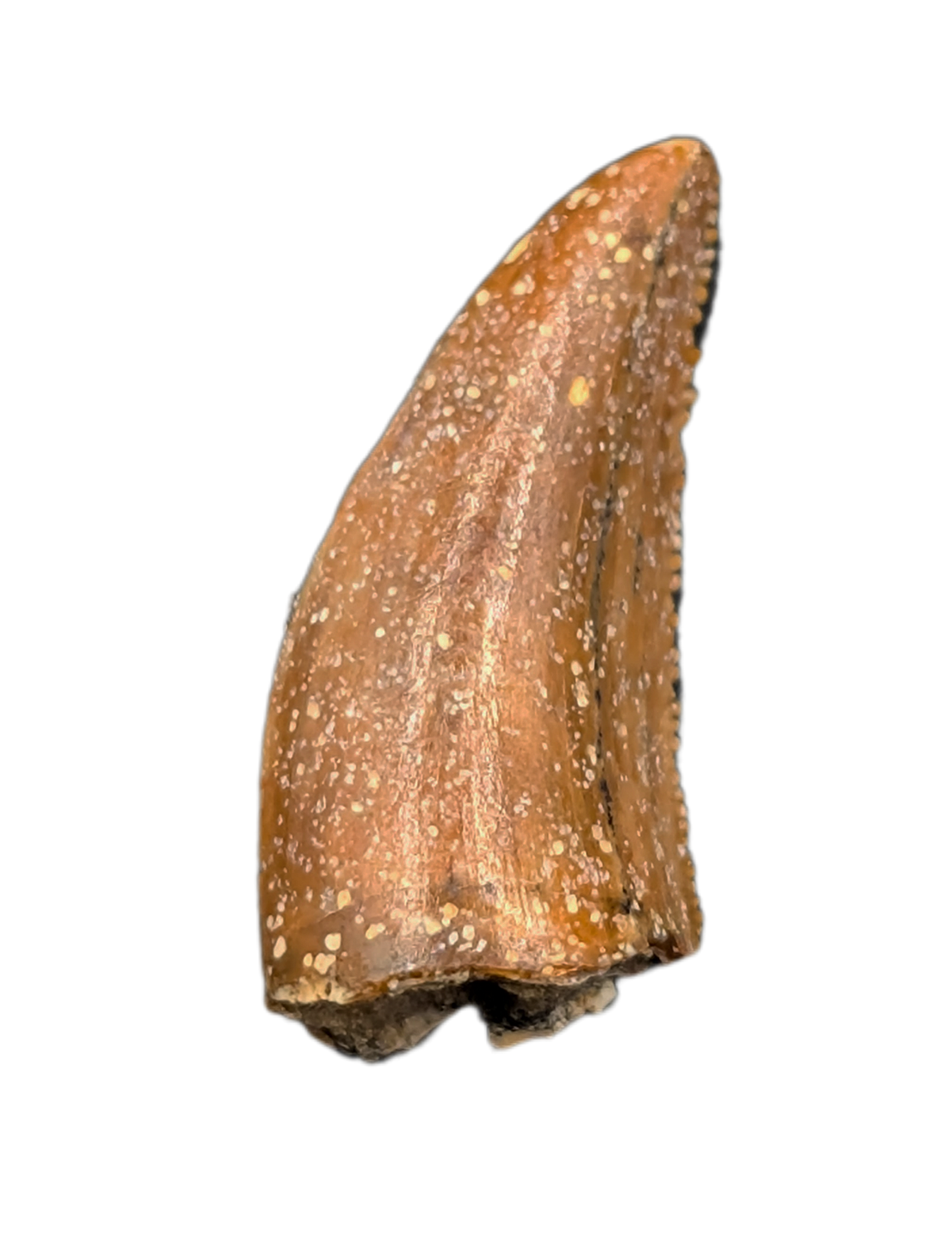 0.55" (1.4 cm) theropod tooth from the Isalo Ill Formation of Madagascar. The Isalo Ill Formation is 168-165 million years old.
