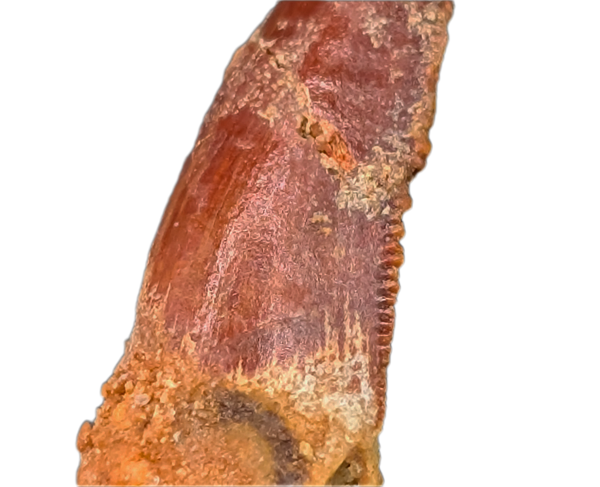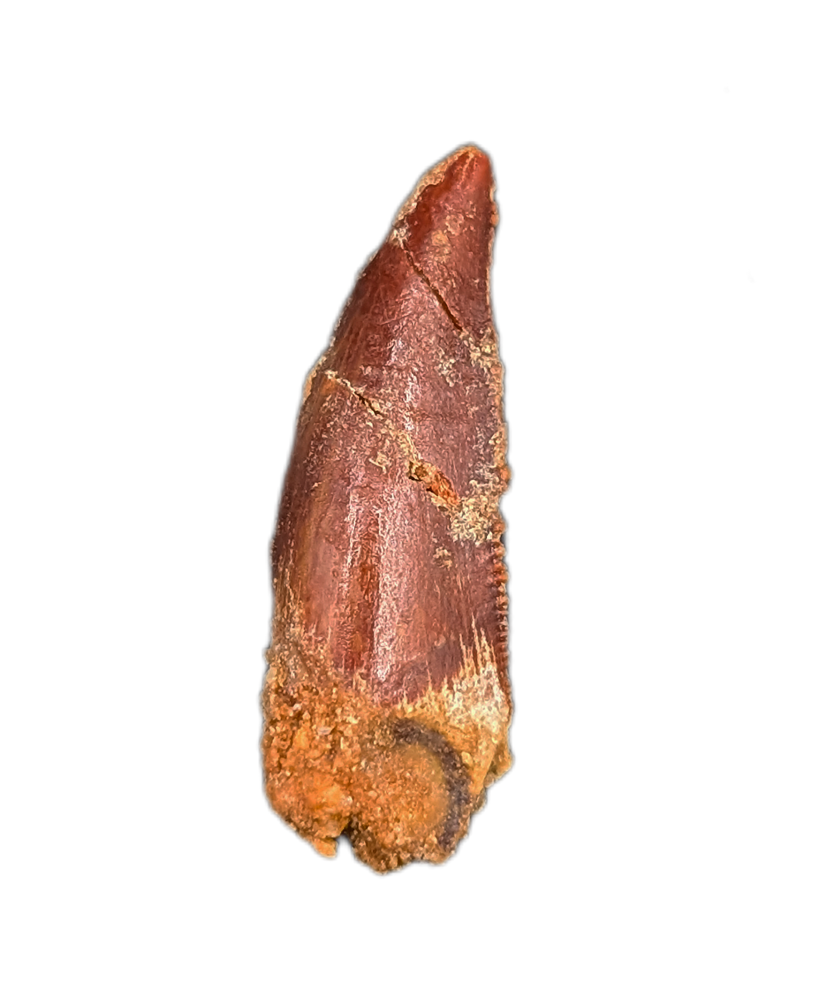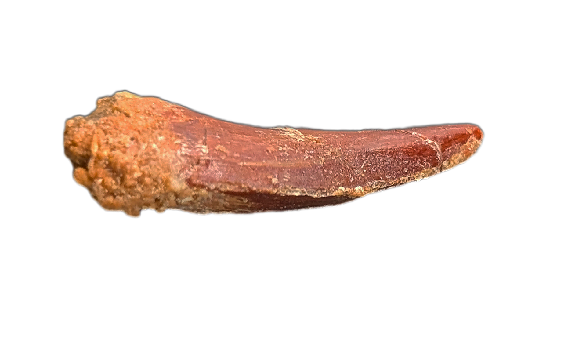 0.67" (1.7 cm)  undescribed theropod tooth, Bissekty Formation, Uzbekistan. A rare formation to obtain fossils. 90-92 Million years old, the Bissekty Formation has outcrop in the Kyzyl Kum desert of Uzbekistan.  Small teeth are very rare to find from this formation.